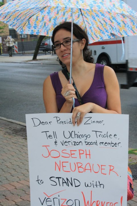 At the University of Chicago on Monday, a 13-member delegation, led by United Students Against Sweatshops, visited University President Robert Zimmer’s office to deliver a letter explaining their concerns about University Trustee Joseph Neubauer’s high profile role on Verizon’s board of directors and his support for job-killing corporate strategies designed to destroy the middle class and make executives richer.