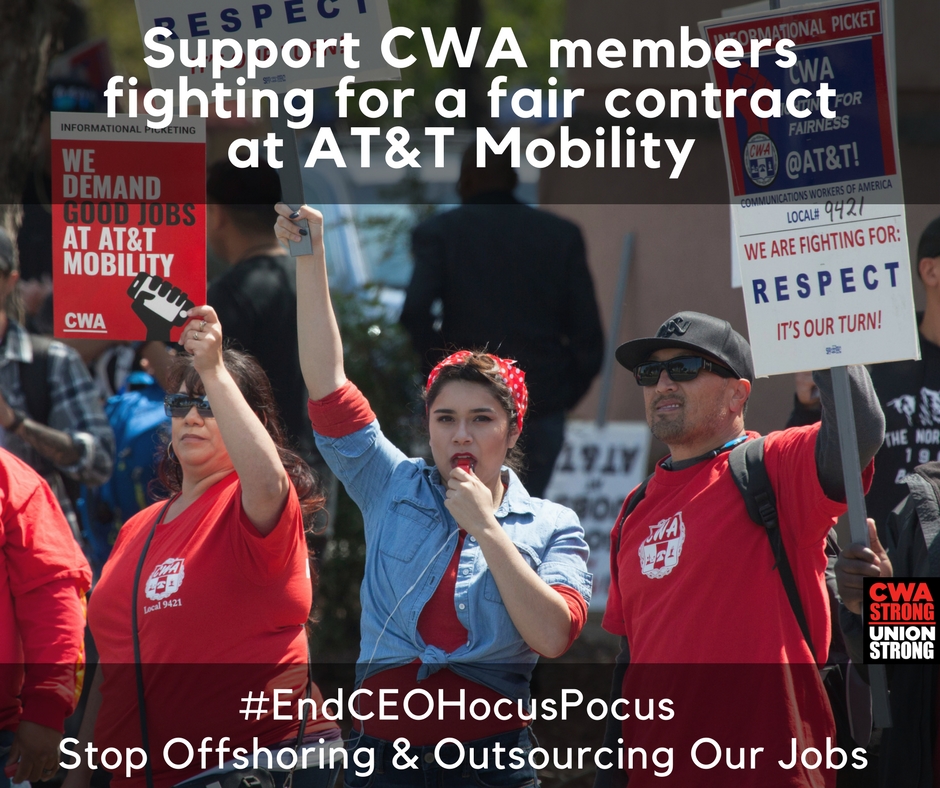 Corporate CEOs continue to threaten our customer service members by offshoring and outsourcing jobs. AT&T has eliminated more than 12,000 call center jobs since 2011, sending many to overseas vendors. CWA is seven months into negotiations with AT&T Mobility for a contract covering 21,000 retail workers, call center reps and technicians in 36 states and DC, and outsourcing is a key concern. Likewise, Verizon continues to use a global network of vendors. And when Frontier acquired Verizon wireline in several states, they pledged to bring back all outsourced work and did so in 2016. But on January 6, 2017, Frontier notified its employees that they would be sending calls outside again, both to domestic outsourcers and offshore. This cannot stand.