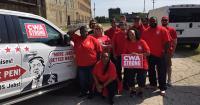 CWAers and other activists on the Midwest Pickup Tour rallied for good jobs in Youngstown and Lorain, Ohio, and Erie, Pennsylvania.