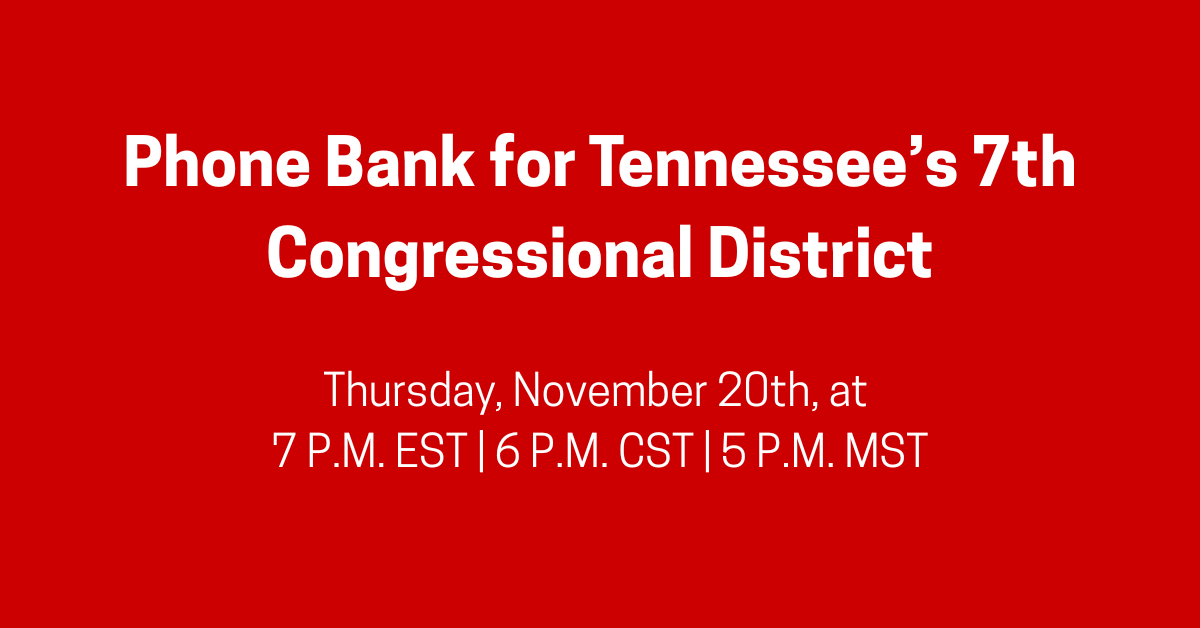 Please join us for a virtual phone bank coming up on Thursday, November 20th, at 7 P.M. EST | 6 P.M. CST | 5 P.M. MST to help us get out the vote. The phone bank will take place on Zoom. RSVP to receive your link to join. We’ll provide a brief training at the start of the call, along with background on the campaign and tips for connecting with voters.
