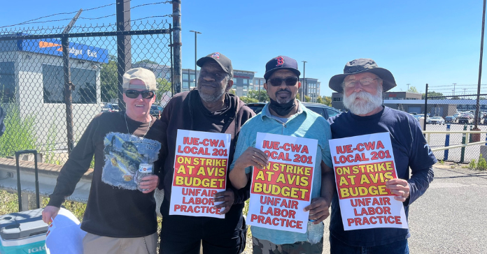 Last Friday, workers at Avis Budget in Boston, members of IUE-CWA Local 81201, staged a successful 24-hour unfair labor practice strike in response to management’s violation of federal labor law by failing to appoint an authorized representative to negotiate with the union. Workers entered negotiations over three months ago with the aim of improving conditions including wages, cost and coverage of healthcare, and working hours. Management has dragged its feet, failing to come to the table with a good faith proposal despite receiving two contract extensions. The second extension expired on August 31st.