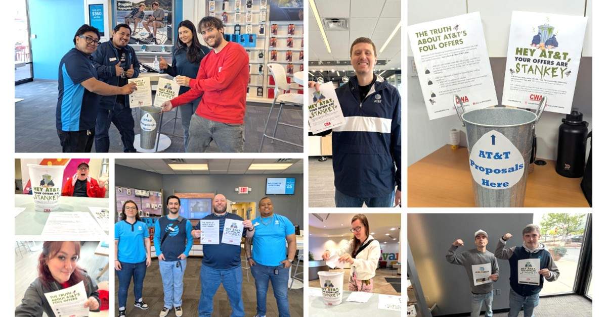 Following a one-week extension for a new contract, CWA AT&T Orange Mobility members are mobilizing to show AT&T—and CEO John Stankey—what they think of their foul offers at the bargaining table. CWA Locals 9511, 4900, 7250, and 7901 held signs debunking the company’s “generous” offers as “stankey.” CWAers at AT&T Orange Mobility deserve a strong contract and will do what it takes to get it.