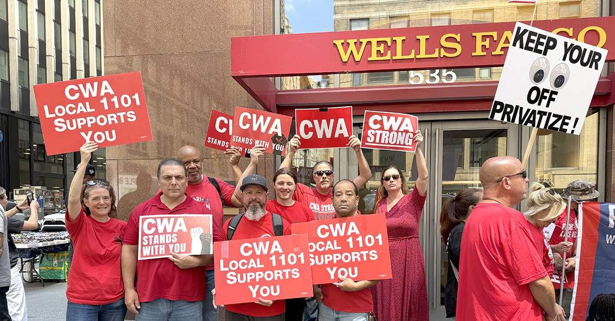 "CWA stands in solidarity with APWU,” said CWA Director of Organizing Tim Dubnau. “We know that privatizing our mail will destroy good union jobs, make the post office slower, and make the experience worse for customers. Wells Fargo should stop interfering with the post office and put their energies into bargaining with CWA members for a first contract for the 29 branches that are now CWA strong."