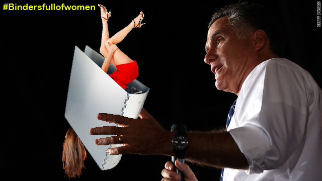 Binders full of women? The Internet peanut gallery celebrated with a full-on counterattack complete with @RomneysBinder, parody Facebook pages and a Tumblr dedicated to women stuck in Trapper Keepers. American Bridge 21st Century PAC snapped up the URL and has already launched a full website, www.bindersfullofwomen.com, about why Romney is bad for women.