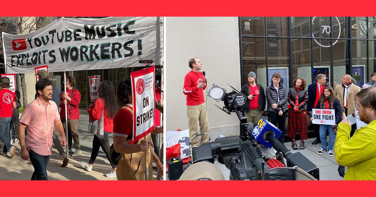 Dozens of Google workers and supporters, including Congressman Greg Casar and CWA District 1 Vice President Dennis Trainor, participated in rallies in Austin and New York City in solidarity with striking YouTube Music workers.