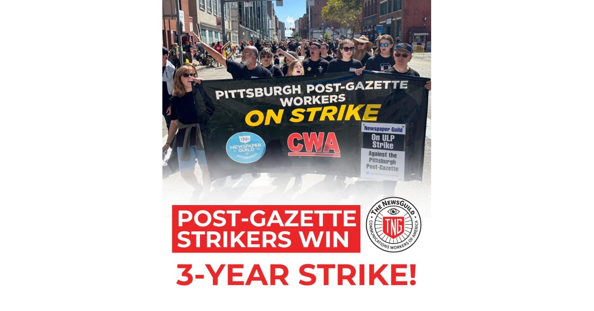 “Ever since Post-Gazette management ripped apart our contract in 2020, our union of journalists has been standing and fighting the lawless union-busting that we’ve been subjected to every step of the way,” said Andrew Goldstein, striking education reporter and Newspaper Guild of Pittsburgh president. “When we walked out on strike in October 2022, it wasn’t just for us and our rights as workers; we were fighting for fair treatment for the future journalists in Pittsburgh and beyond. Today’s victory vindicates our fight and shows that NewsGuild workers will never back down no matter how long it takes.”